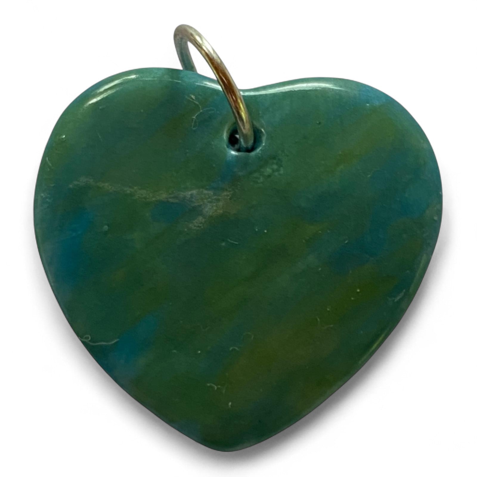 Discover this exquisite handcrafted ceramic heart pendant from Celsius Ceramics. Each piece is meticulously made, featuring a captivating marbled or swirled design in vibrant blues and greens, reminiscent of ocean depths or lush landscapes.